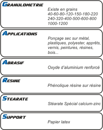 ![]() ENCRASSEMENT Grâce au stéarate, Sand One s’utilise longtemps sans encrassement. Cela garantit une longue durée et une haute qualité de la finition. DUREE L’Oxyde d’Aluminium synthétique renforcé « Blue-Fired » est très dur et garantit une très longue durée sur tout les matériaux. FINITION Sand One offre une bonne finition. Pour tous les grains la finition est fine et très homogène, ce qui permet d’ appliquer différents cycles en s’adaptant à tous systèmes de travail avec garantie du résultat final. AGRESSION L’agression est optimale sur tous matériaux grâce à la nouvelle technique chimique pour traiter le minéral renforcé. Le grain garde tous les avantages du corindon (oxyde d’aluminium blanc), qui sont durée et finition, et en même temps les avantages de l’oxyde d’aluminium brun (haute capacité de coupage). Tandis que les abrasifs « traditionnels » commencent à perdre agression en peu de secondes après le début du ponçage, Sand One travaille bien plus | ![]() |