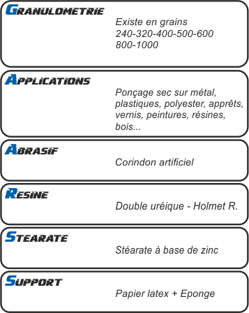 ![]() FLEXIBILITE La flexibilité et la souplesse du POLIFLEX le rendent idéal pour le ponçage à main de surfaces peintes. DUREE Le Corindon synthétique renforcé est très dur et garantit sur tous matériaux une très longue durée. FINITION POLIFLEX offre une très bonne finition. Pour tous les grains la finition est fine et très homogène, ce qui permet d’appliquer différents cycles en s’adaptant à tous systèmes de travail avec une garantie du résultat final. AGRESSION L’agression est optimale sur tous matériaux, ce qui permet de travailler même avec très peu de pression, avec une meilleure finition des supports, et moins d’encrassement. ANTI-ENCRASSEMENT La haute qualité du stéarate garantit aussi bien la longue durée du produit, que la bonne finition des supports, en prévenant les rayures causées par l’encrassement de l’abrasif. | ![]() |